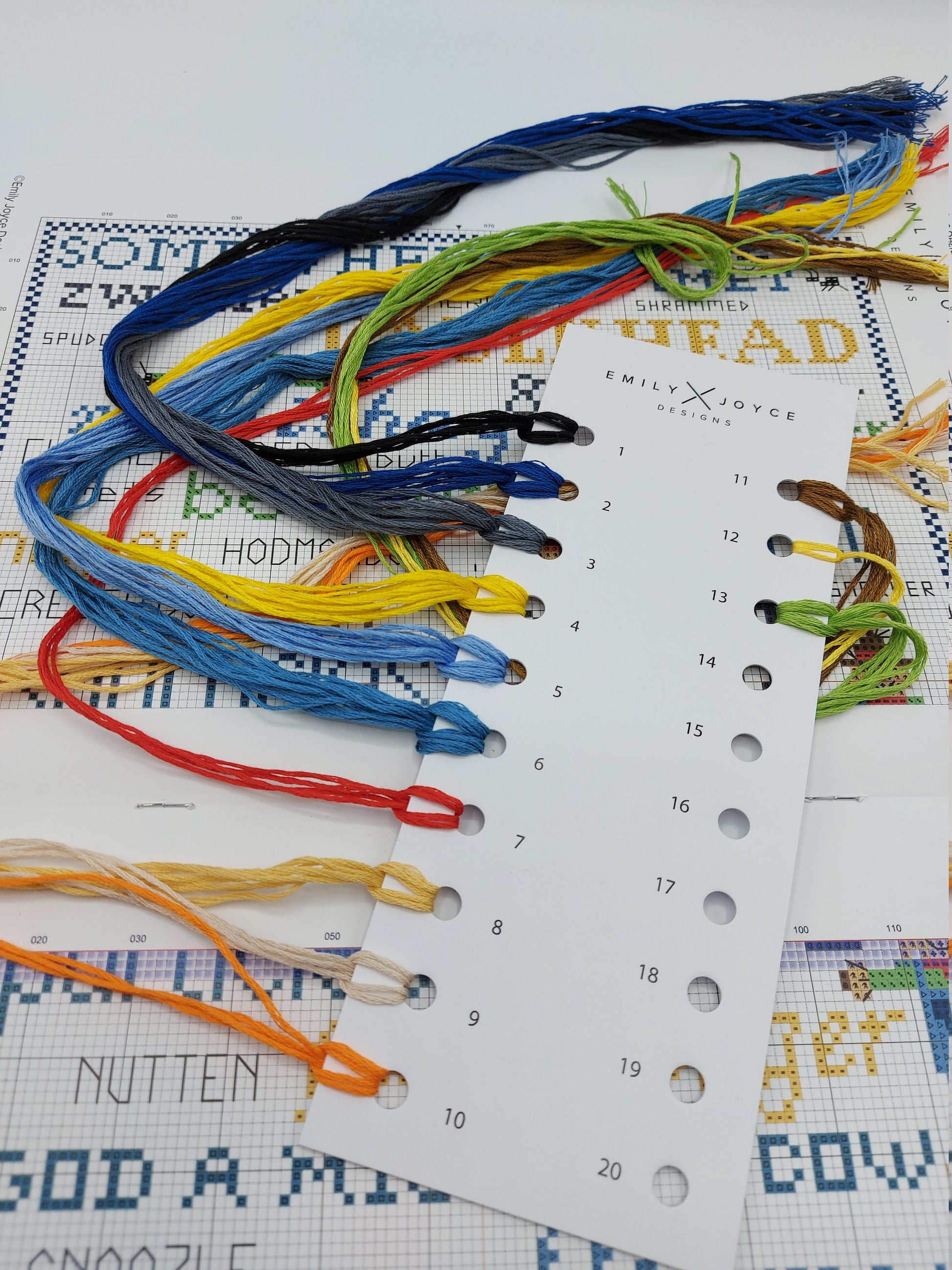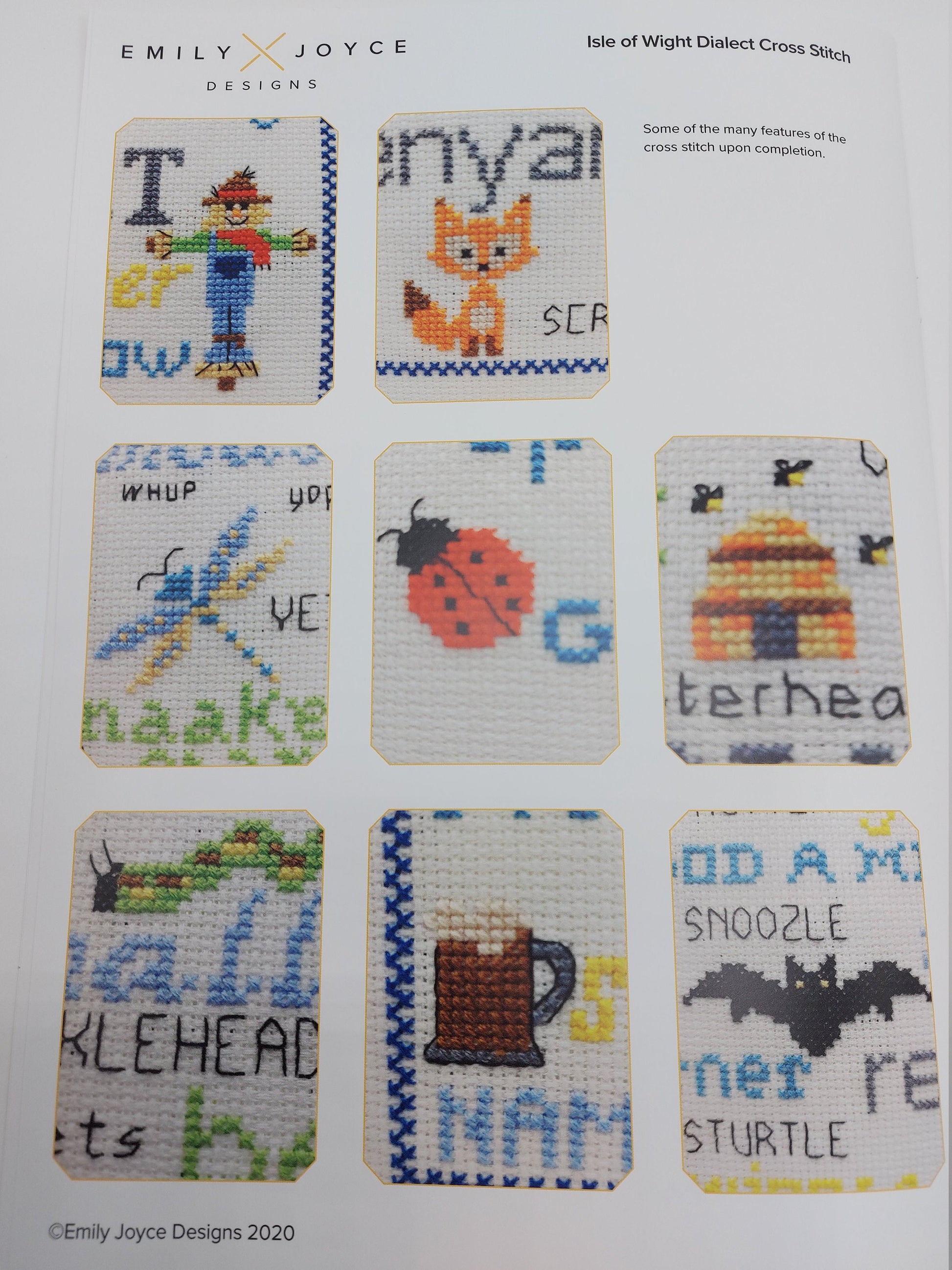 A bright and fun cross stitch kit that celebrates the quirky dialect of the Isle of Wight! Full colour booklet with instructions, a key, easy to read cross stitch chart and close of pictures of the main illustrations, needle, pre-sorted DMC stranded threads and 14 count white Aida included.